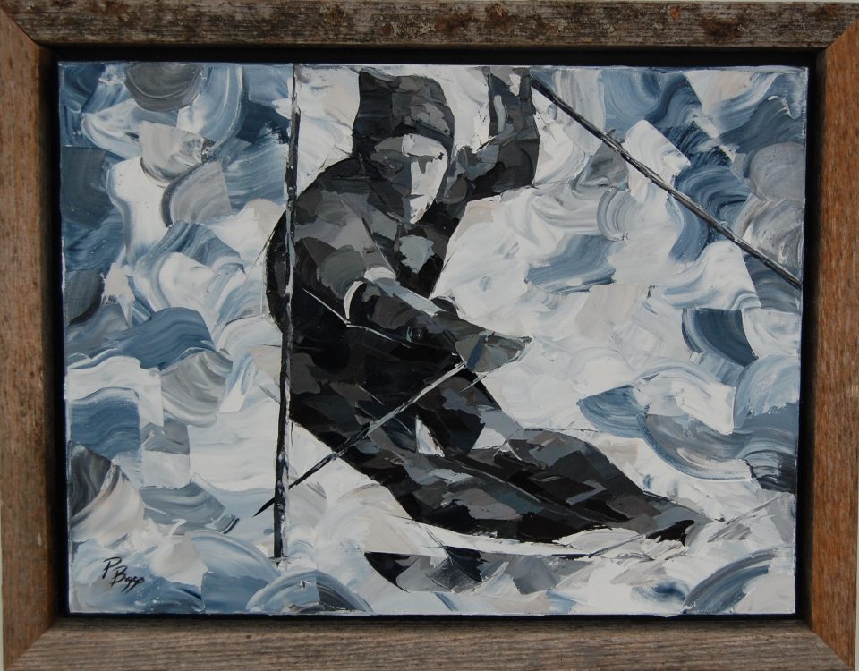 UNAVAILABLE – 24×30 Oil – ‘Zorro’ is a special painting in memory of Nikola “Zorro” Zoricic. Nik was one of Canada’s most beloved ski racers, competing